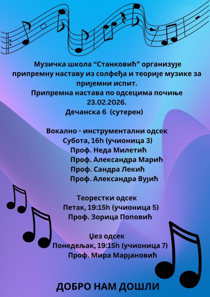 Почетак припремне наставе за пријемни испит за СМШ, школска 2026/2027.